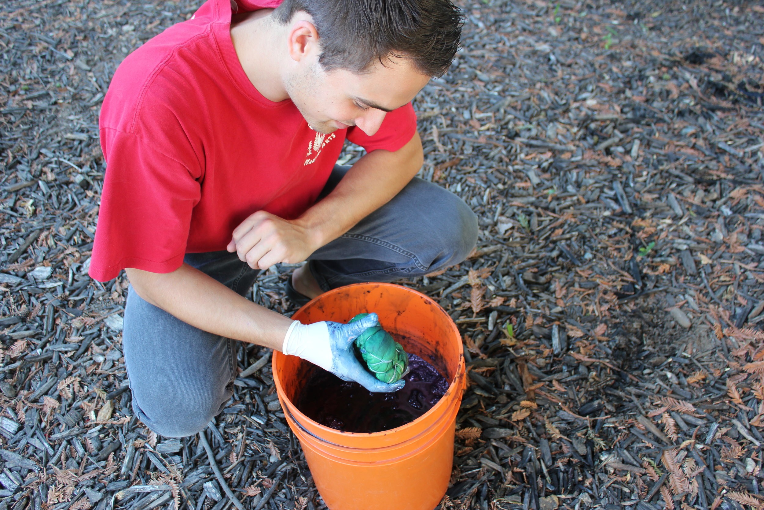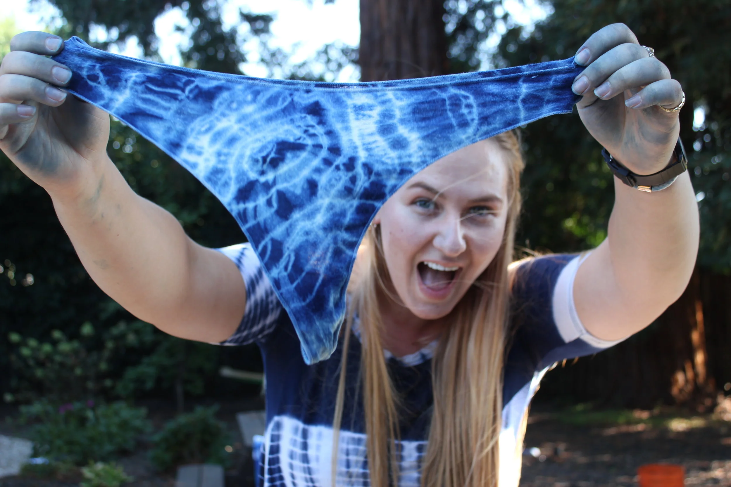 Ahh the annual tradition of the great Shibori dye! For the past two years now, indigo dyeing has been an end of summer spoil. All year we save up every scrap of white cloth we can find. From curtains, to tote bags, mattress covers and tube socks; It's all fair game in the world of Shibori.