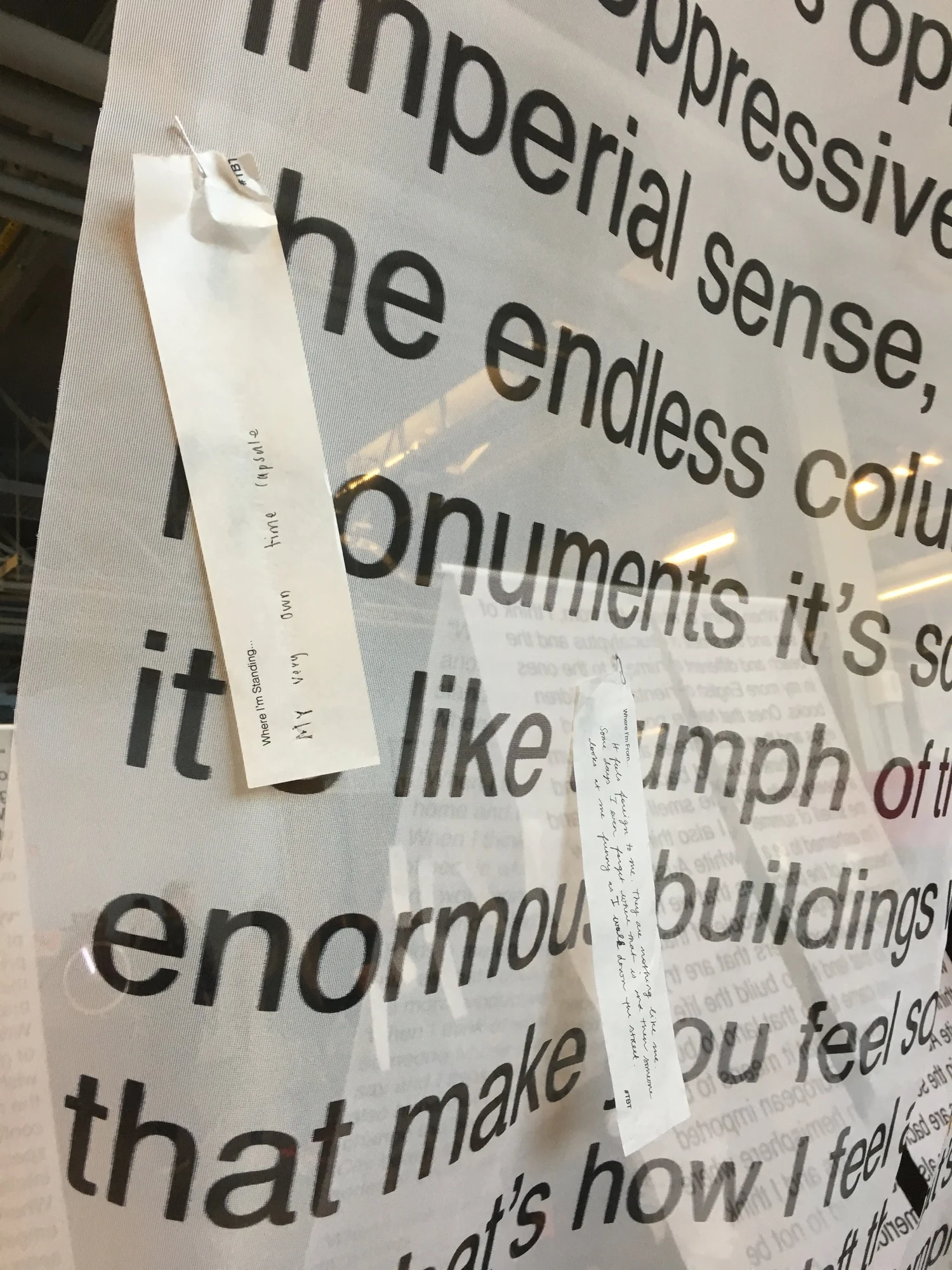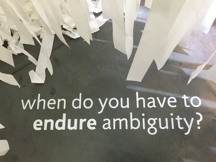The most impactful installation was “Navigate Ambiguity.” The idea of the installation was to ask students what ambiguity meant to them and provide a personal metaphor. Some we’re heartfelt and introspective. Some related ambiguity to half-set jello. It was great to see the variety and also the importance of ambiguity, especially in design. It left me feeling empowered to take a thoughtful risk with a project, even if the outcome could provide an ambiguous result. Sometimes an open-ended design allows for the user to really project their own ideas on the product and it feels more personal and meaningful to them.